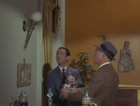When the seltzer bottle trigger is squeezed the nearby wall lamp moves forward, knocking anyone standing under it on the head.